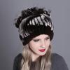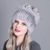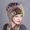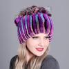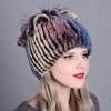 Damen-Herbst-Winter-Rex-Kaninchenhaar-Fell, warm, verdickt, bunt, Strickmütze