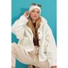 Beigefarbener Damen-Plüschmantel mit Kapuze und doppelten Taschen, Alc-x9323