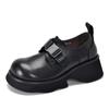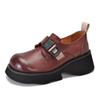 Johnature Dicke Sohlen-Pumps, leicht, echtes Leder, vielseitige Retro-Damen-Plateauschuhe mit runder Zehenpartie