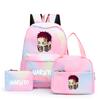 3-teiliger Schulrucksack für Mädchen Y2K mit Lunch-Taschen, Studenten-Taschen-Set, Kinder-Stifttasche, zurück zur Schule, Anime-Leinwand-Rucksack