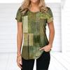 Vintage Damen T-Shirt Sommer Kurzarm Top T-Shirt Bunte Patchwork Kleidung O-Ausschnitt Übergroße Bekleidung Täglich für Damen T-Shirt