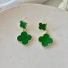 Lange vierblättrige Kleeblatt-Ohrringe, Marmor-Textur-Plattenohrringe, Temperament, Netzrot, Herbst- und Winterohrringe