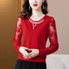 Runde Kragen Einfarbig Spitze Hemd Frühling Herbst Kleidung Neue frauen Bodenbildung Shirt Chiffon Top Lange Ärmeln Kurze T-shirt