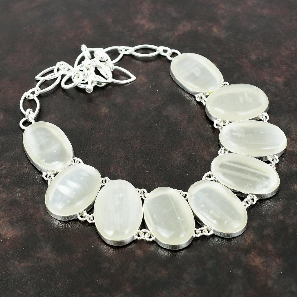 Selenit-Halskette, wunderschöner Schmuck, 925er-Sterlingsilber-Halskette, handgefertigt, brandneuer Edelstein-Schmuck, verstellbare Kette, Geschenk für Frau