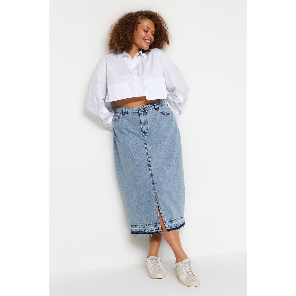 Blauer Jeansrock mit Schlitz vorne Tbbss23az00054