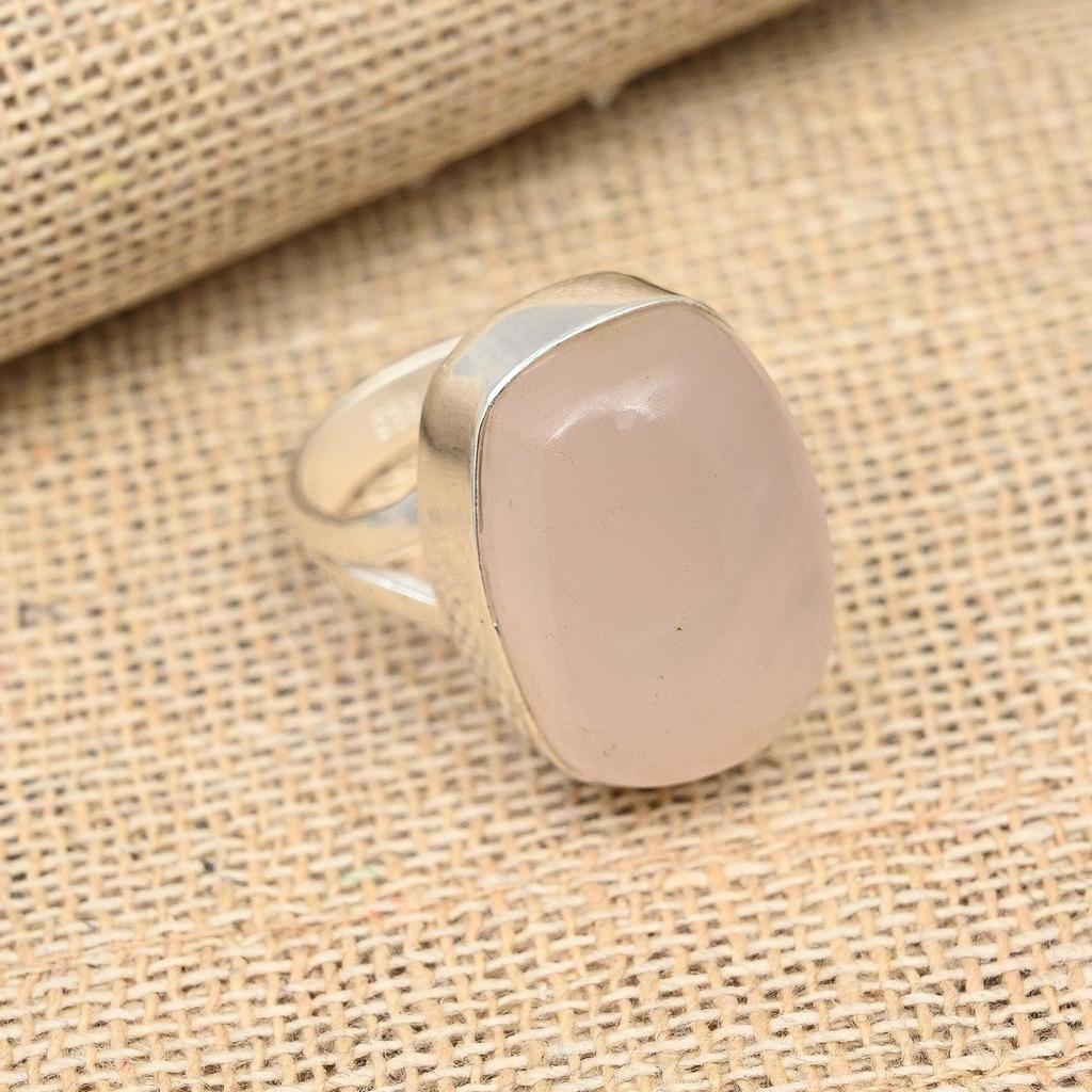 Rosenquarz-Edelstein, handgefertigter Ringschmuck aus 925er Sterlingsilber für Thanksgiving