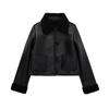 Faux Leder Jacke Frauen PU Pelz Integrierte Tasche Weibliche Moto Mantel Herbst Dicke Warme Fleece Einreiher Dame Mantel