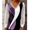 Herbst Winter Frauen Bluse V-ausschnitt Lose Druck Hohl Spitze Patchwork Hemd Damen Top
