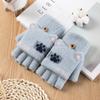 Handschuhe für Damen, Winter, süße Cartoon-Halbfinger-Flip-up-warme Student-Schreib-Strickhandschuhe