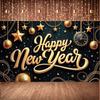 Banner-Flagge mit glitzernden „Happy Year“-Buchstaben für 2024, schafft Atmosphäre, glänzende, elegante Hängedekorationen oder Partys