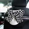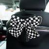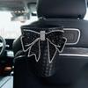 Kreativer gestrickter Leder-Auto-Mülleimer mit Schleife für Kopfstütze, Mini-Auto-Auslass, Lüftungsschlitz, Müllbeutel, Müllaufbewahrungsbox für Frauen