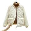 Frauen Herbst Winter Einfarbig Kurze Baumwolle Mantel Langarm Plüsch Spleißen Jacke Taschen Zipper Knopfleiste Baumwolle Gepolsterte Outwear