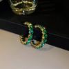 Grüner Zirkon-Creolen-Ohrring, C-Form, luxuriös, übertrieben, geometrisch, glänzend, große Ohrringe, Schmuck, Party-Geschenk