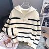 Casual Pullover Frauen Zipper Rollkragen Gestreiften Pull Femme Thicked Casual Sueter 2022 Ropa Mujer Stricken Übergroßen Strickjacke Mantel