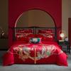 Vierteiliges Hochzeitsset aus reiner Baumwolle im chinesischen Stil mit bestickter leuchtend roter Stickerei und zehnteiligem Hochzeitsbettlaken und Bettbezug