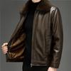 Herren-Fleece-gefütterter dicker Ledermantel, PU-Lederjacke, Herbst- und Winter-Reißverschluss-Pelzmantel