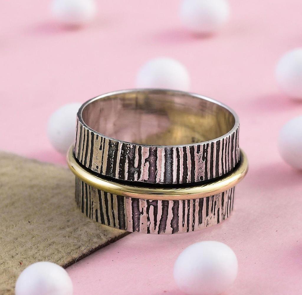 Gehämmerter Silberring, 925er Sterlingsilberring, Designer-Spinnerring, handgefertigter dreifarbiger Ring, Geschenk für Sie, Meditationsspinnerring
