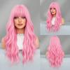 Neue Damen Perücke Simulation Perücke 64 cm Haar Rosa Perücke Lange Lockige Perücke Volle Kopfbedeckung Rose Haarnetz Kopfschmuck Schönheit Dekoration Perücke