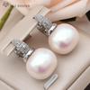 Mode Runde Rechteck Simulierte-perle Perle Tropfen Ohrringe Für Frauen Rose Gold Farbe Zirkonia Eardrop