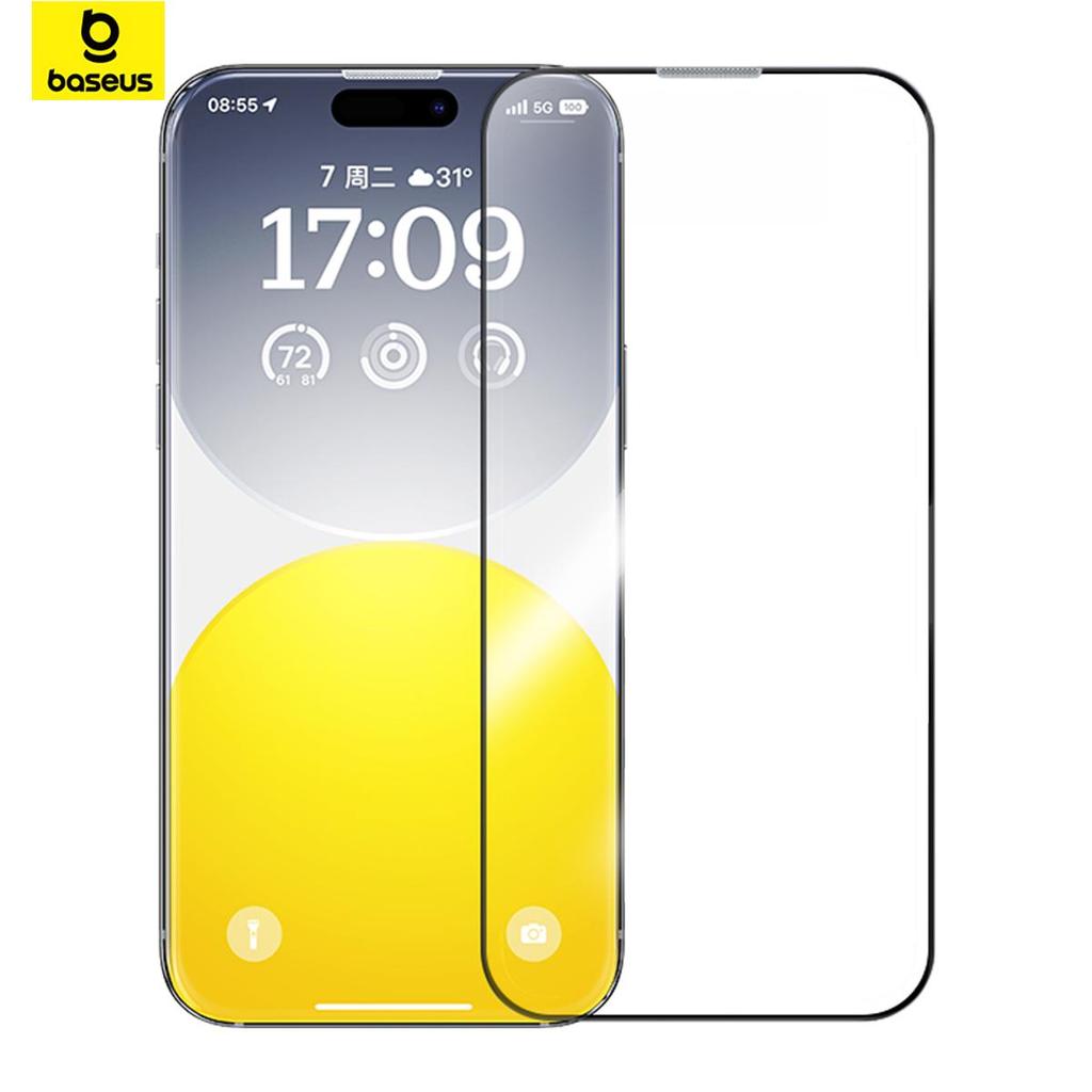 Baseus Sapphire Series HD-Displayschutz aus gehärtetem Glas mit integriertem Staubfilter für iP 15/15 Plus
