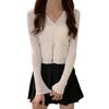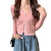 Damen-Strickjacke mit V-Ausschnitt, einfarbig, mit Knöpfen, lässig, lange Ärmel