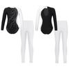 Kinder Mädchen Gymnastik Skating Tanz Outfits Langarm Trikot mit Stehkragen und Leggings