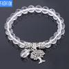 Natürliches Kristallarmband, 8 mm, runde Perlen, Perlenarmband, antikes Silber, Lebensbaum-Charm, Chakra-Schmuck