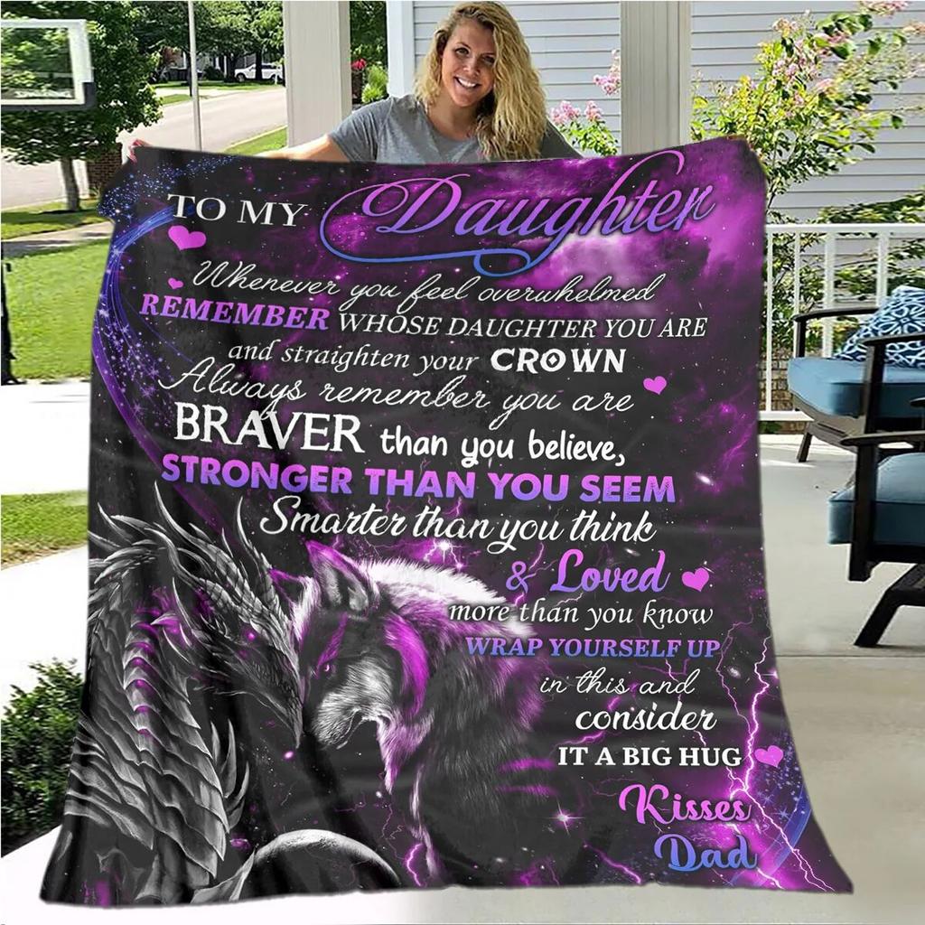 Personalisierte Sherpa-Decke für meine Tochter, bedruckt mit Löwe, Wolf und Drache, Geschenk von Mama, Papa, Sofabettdecke, weiche Picknickdecke
