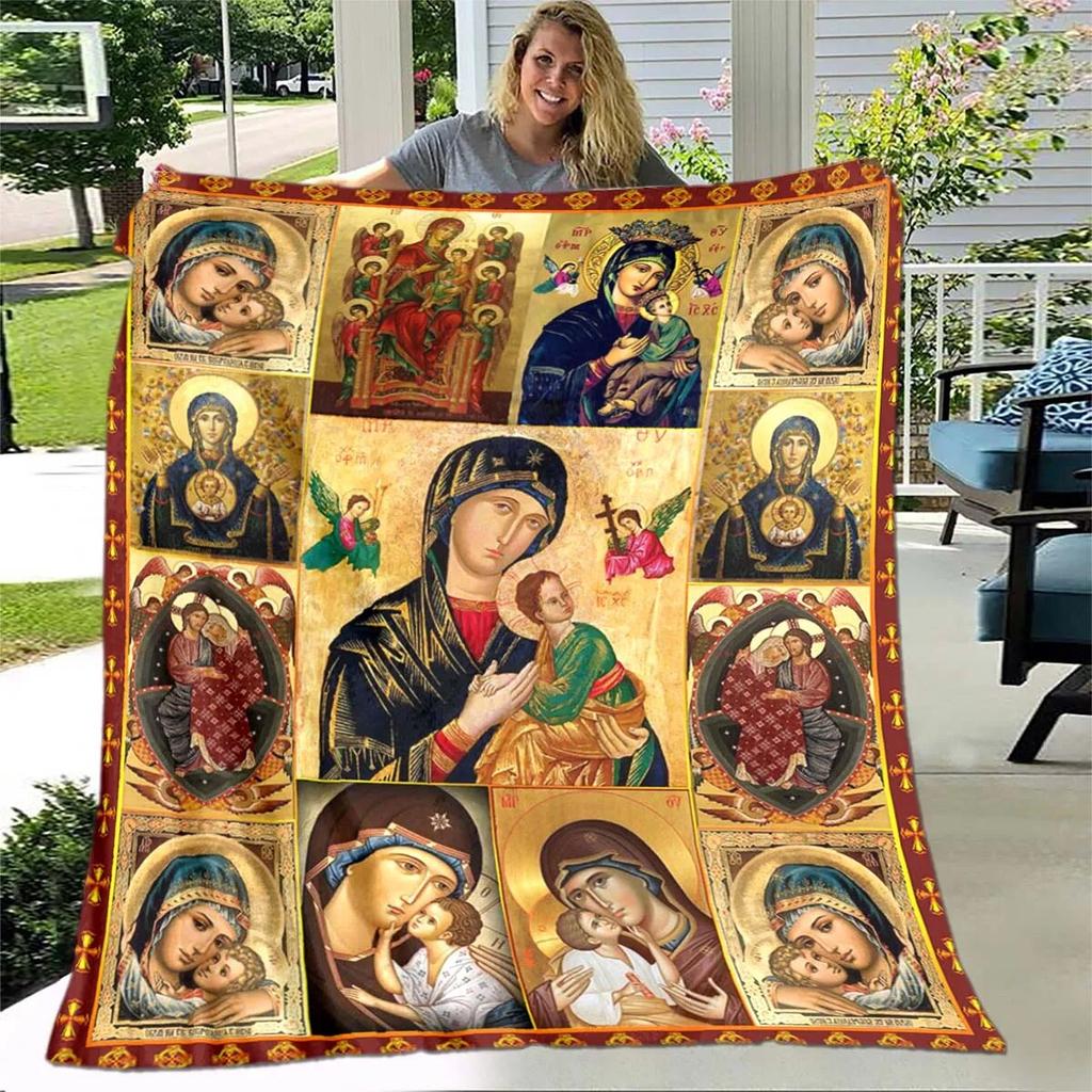 Weiche Überwurfdecke mit Jesus-Jungfrau Maria, Bettwäsche aus Flanell, warme Decke für Wohnzimmer/Schlafzimmer, Überwurfdecke für Sofa, süße Decke