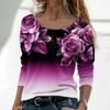 Modisches Damen-T-Shirt mit Farbverlauf und Blumendruck, übergroßes Harajuku-Langarm-T-Shirt, wunderschöner Street-Style-Pullover mit V-Ausschnitt für Damen