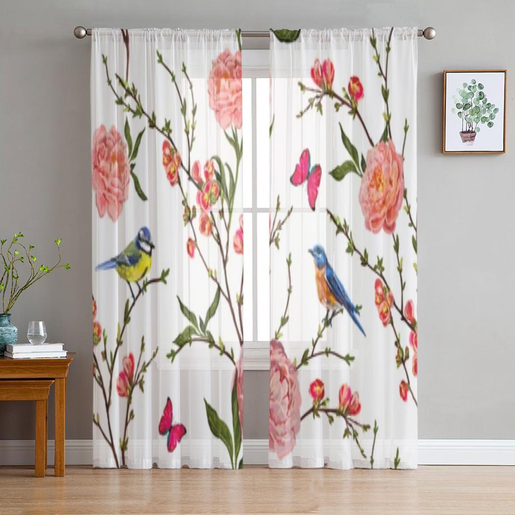 Vögel Schmetterling Pfingstrose Blume Sheer Fenster Vorhänge für Wohnzimmer Schlafzimmer Moderne Voile Tüll Vorhänge Stoff Vorhänge für Küche