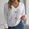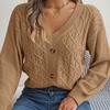 GMXIA Damenmode, lässig, einfarbig, Druck, Herbst/Winter, langärmelig, V-Ausschnitt, lockerer Knopf, Twist, Laternenärmel, Pullover
