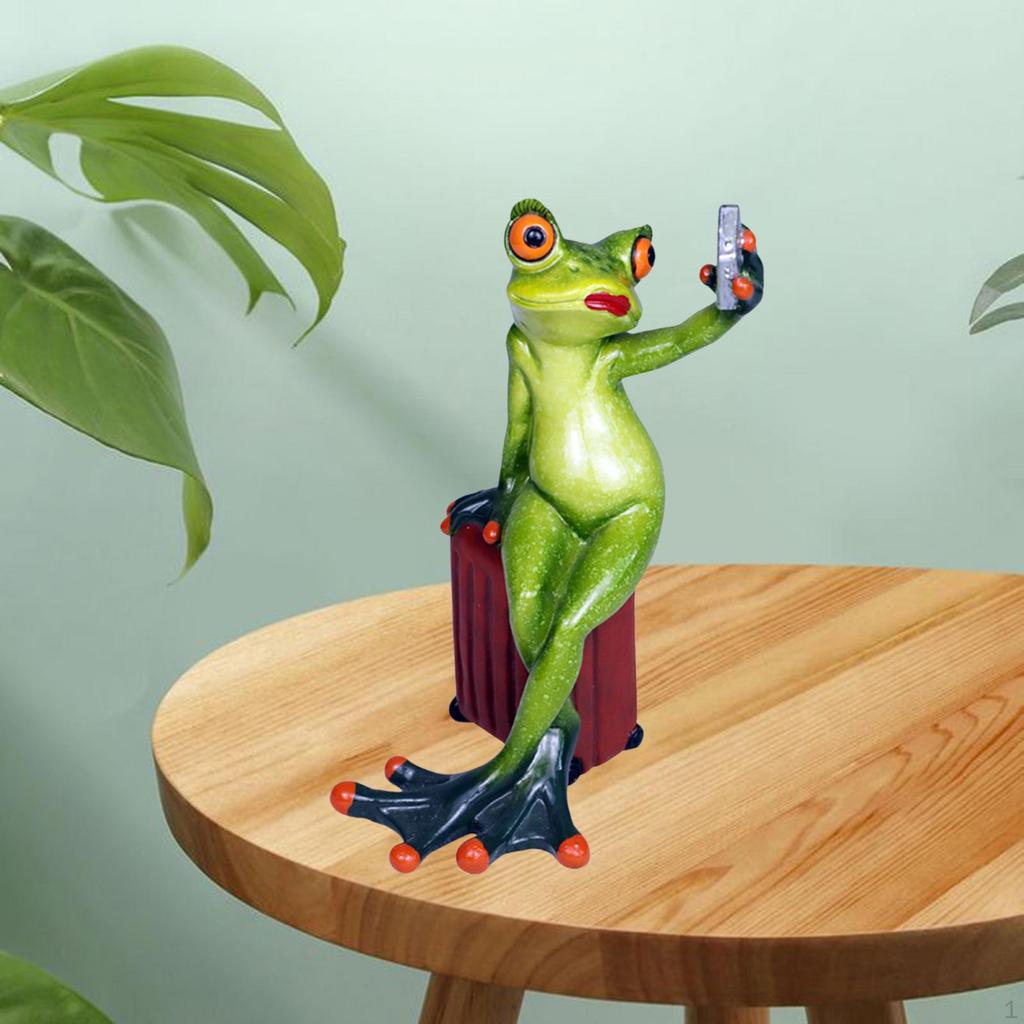 Miniatur-Selfie-Frosch-Statue aus Kunstharz für den Innenbereich