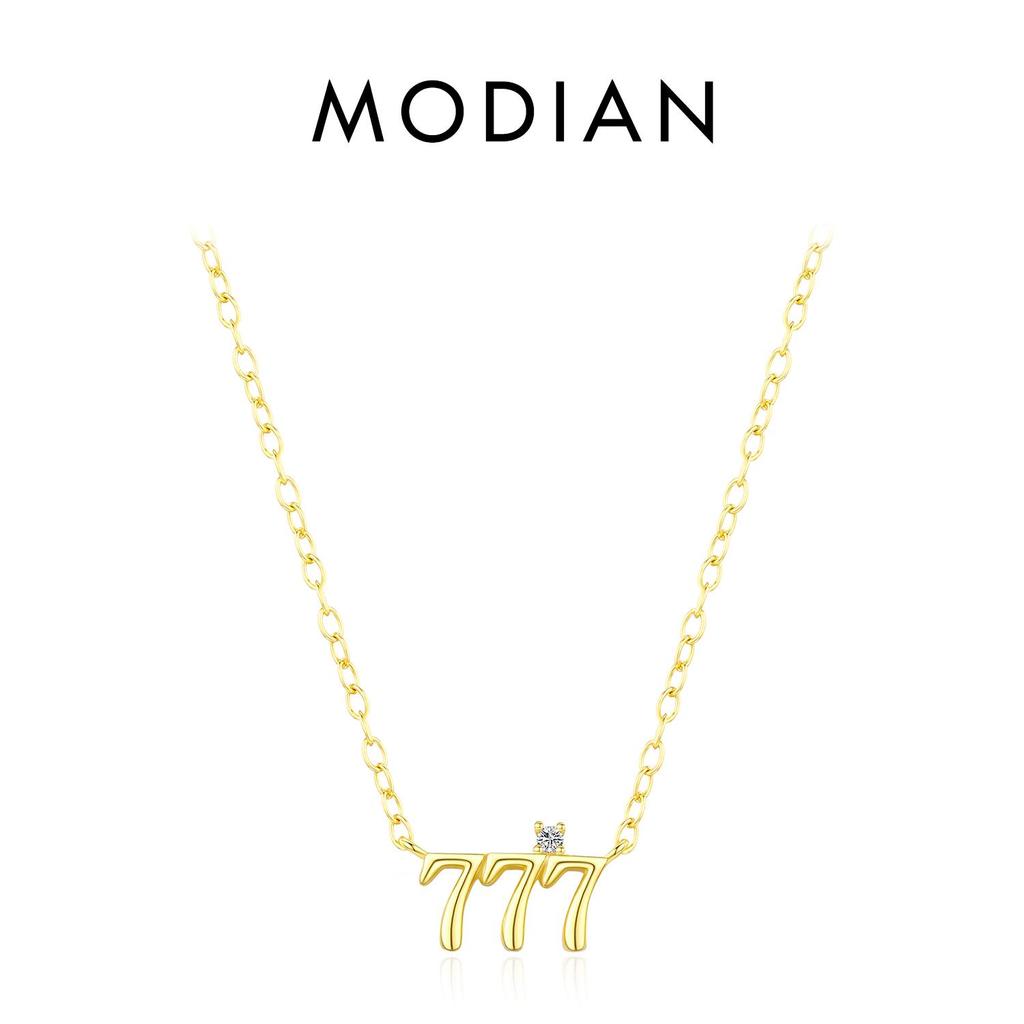 MODIAN 925 Sterling Silber Glückszahl 777 Anhänger Halskette Gold Farbe Halskette Für Frauen Edlen Schmuck Jahrestag Geschenk