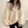 Modischer, mit Fleece gefütterter, bedruckter, langärmliger Basic-All-Match-Pullover mit V-Ausschnitt für Damen