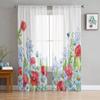 Transparente Vorhänge mit Mohnblumenmotiv für Wohnzimmer, Schlafzimmer, Tüllvorhänge, Küchenfensterbehandlungen, Panel-Vorhänge