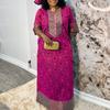 VONDA Lockeres, langes Kleid mit V-Ausschnitt und 1/2 Ärmeln für Damen in großen Größen