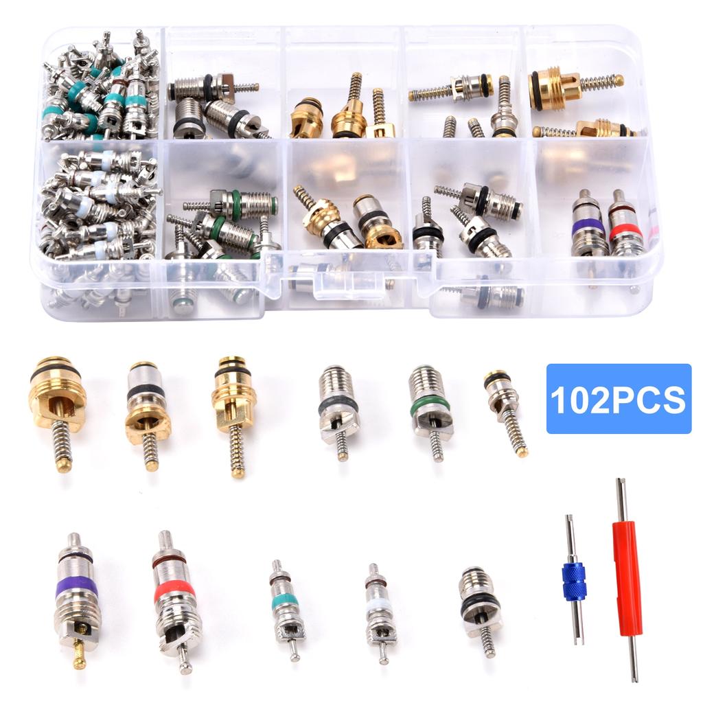 102-teiliges Auto-Klimaanlagen-Ventilkern-Sortiment A/C Shrader-Ventilkern-Werkzeug R134 R12 HVAC-Ventile Kit Autozubehör Outils