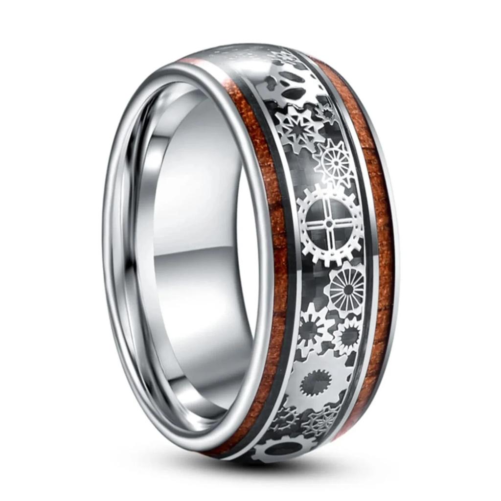 Mode Steampunk Zahnrad Edelstahl Ringe Inlay Koa Holz Ringe Für Männer Hochglanzpoliert Hiphop Punk Rock Biker Schmuck