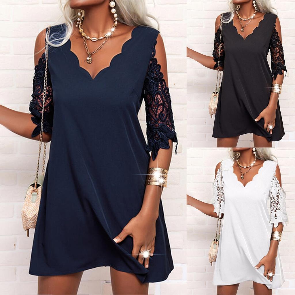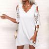Damenmode, lässig, Spitze, Spitze, Spleißen, kurzärmelig, Komfortkleid