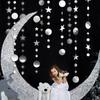 4 m lange verspiegelte Stern-Kreisschnur mit bunten Sternen, rund, glänzende Papiergirlande für Weihnachten, Geburtstag, Schaufenster, Abschlussfeier, Dekoration zum Aufhängen