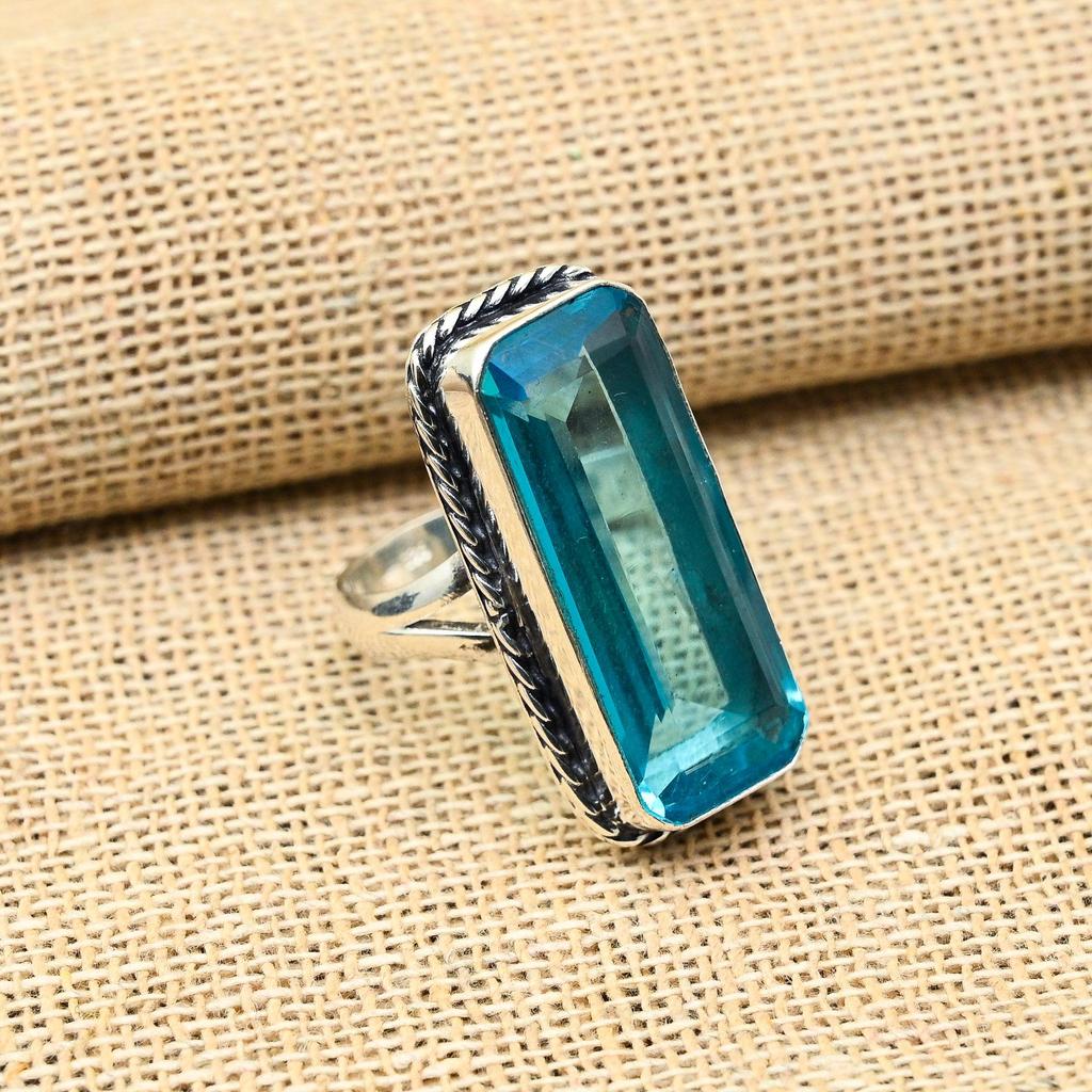 Wunderschöner handgefertigter Ring aus 925er Sterlingsilber mit blauem Topas-Edelstein als Hochzeitsgeschenk