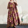 Kurzarm Plus-Size-Baumwolle im Vintage-Stil mit Blumenmuster, neu in Kleidern für Damen, lässiges, lockeres, langes Sommerkleid