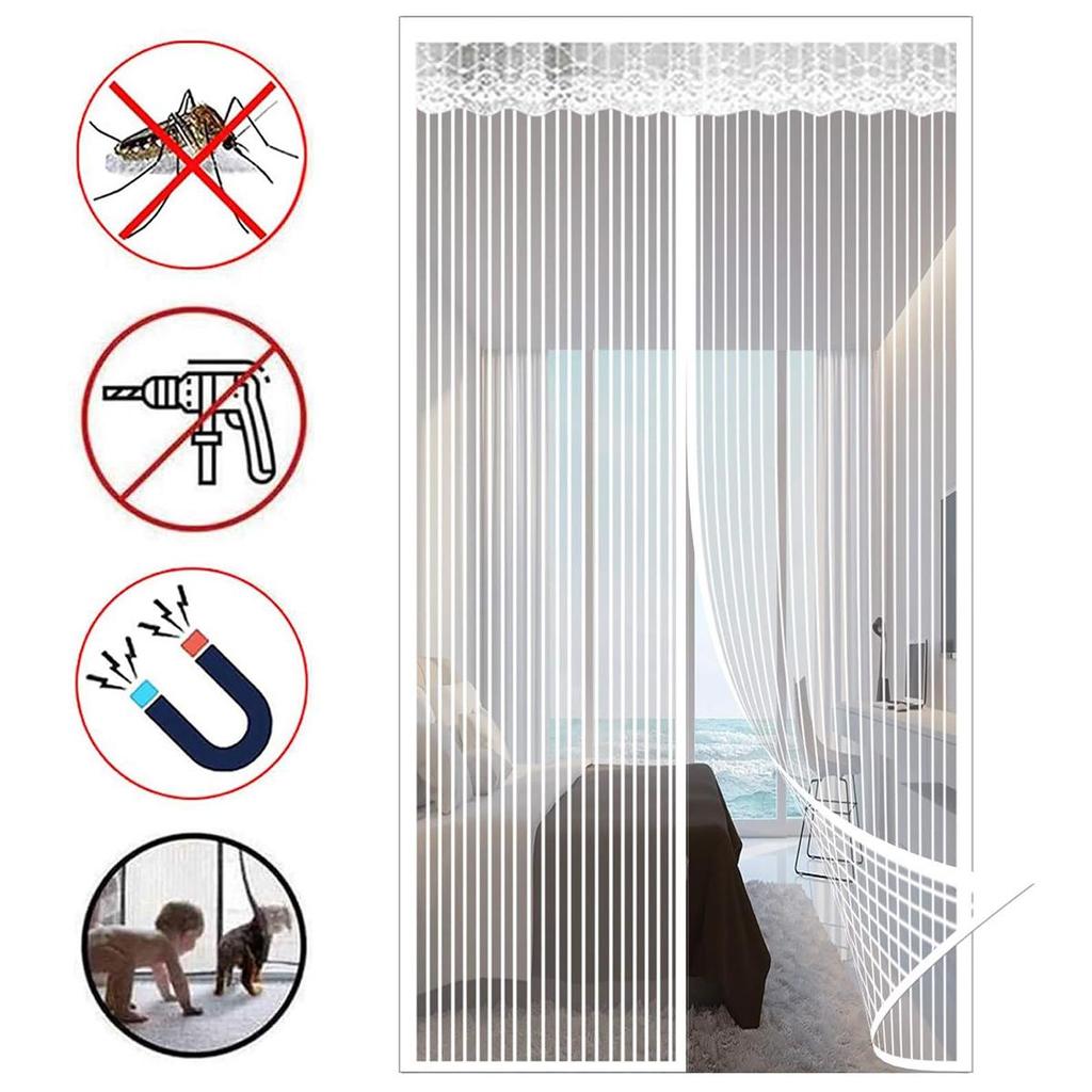 Magnetischer Fliegengitter-Türvorhang, selbstdichtende Fliegengittertür, robuster Türgitter-Magnetverschluss, insektensicher, einziehbares Fliegengitter-Türnetz, Weiß