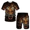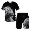Das Tiger 3D-gedruckte T-Shirt/Anzug Sommer Kurzarm O-Ausschnitt Herren Strandhose 2-teiliges Set Paar Sportbekleidung Badeshorts