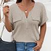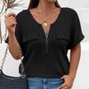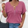 Frühling und Sommer Einfarbig Große Größe frauen Tops Zipper Kurzarm Gefälschte Tasche Pullover Lose T-Shirt