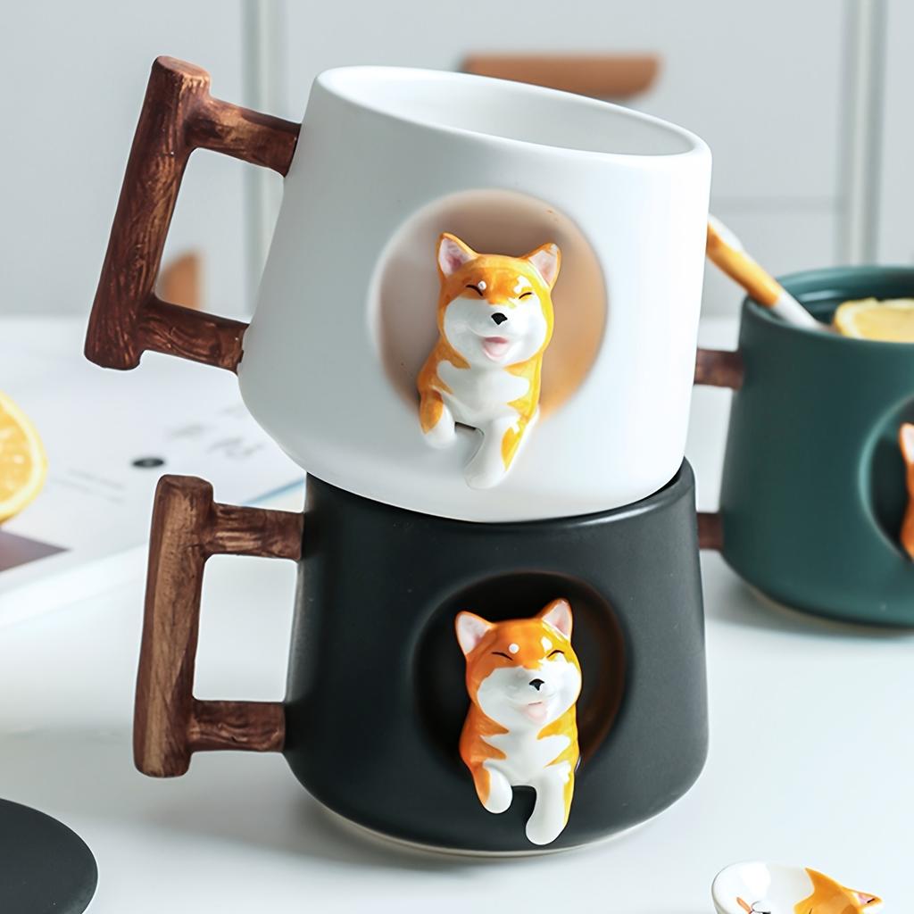 3D-Kaffeetasse mit süßer Hundestatue mit Deckel und Löffel, Teetassen mit 14,2 Unzen Keramikgriff, bemalte lustige Welpenfiguren-Tassen, Geburtstagsgeschenke, Trinkbecher