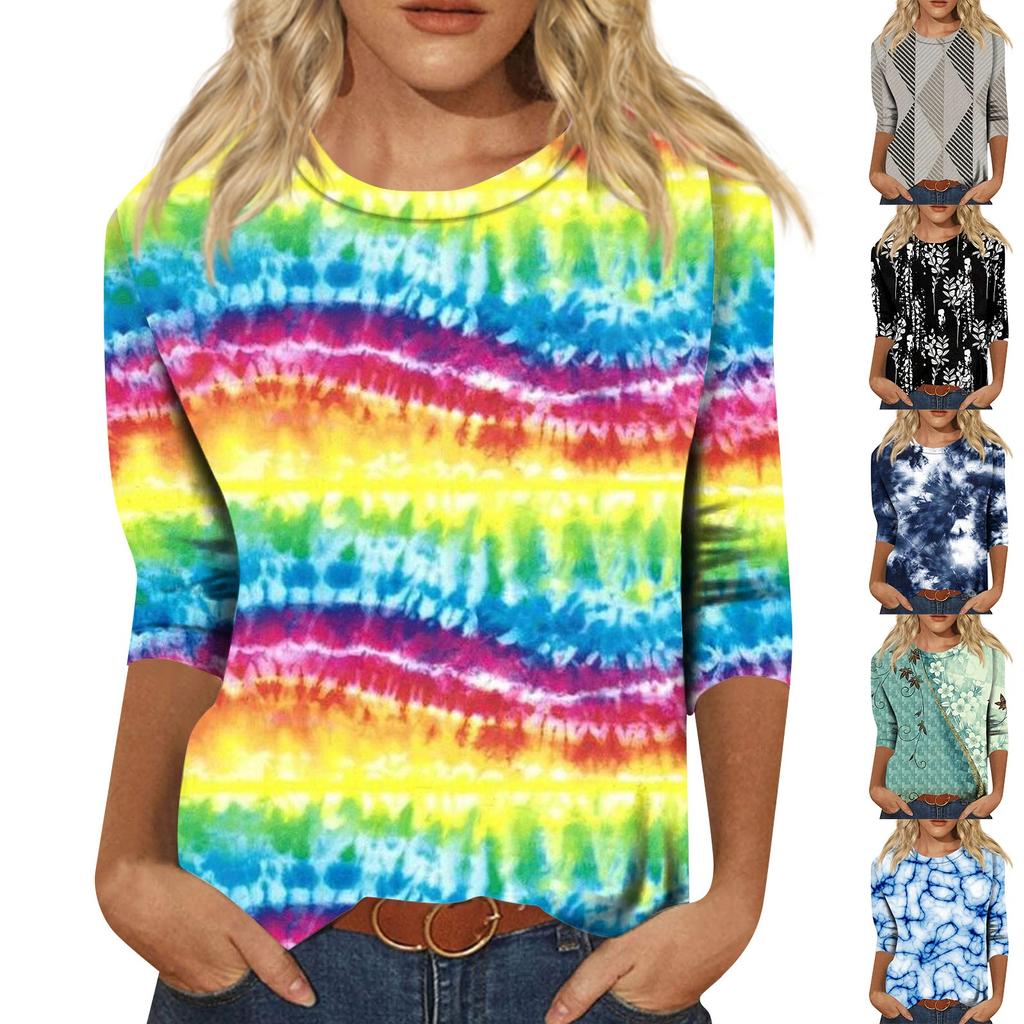 3/4-Ärmel-Shirts für Damen, süße Oberteile, grafische T-Shirts, Blusen, lässig, Übergröße, Basic-Oberteile, Pullover