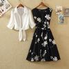 Zweiteiliges Set mit Vintage-Blumendruck, bestehend aus Kleid und A-Linien-Kleid mit hoher Taille für den Sommer