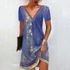 Damen-Kleid mit Knopfdekoration, V-Ausschnitt, Damen-Patchwork-Kleid, Blumendruck, kurze Ärmel, langes Kleid